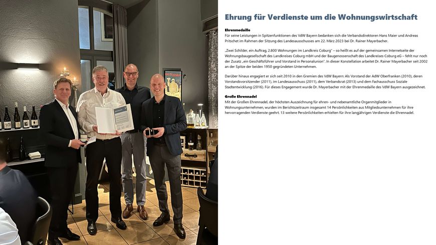 Ehrung für Verdienste um die Wohnungswirtschaft Herausragende Engagement verdient besondere Anerkennung